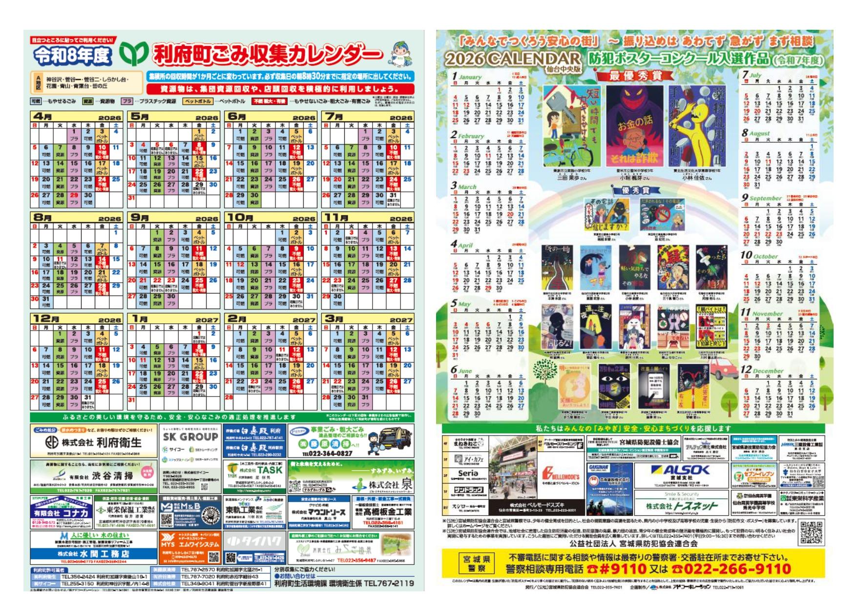 自治体が年度末に全戸配布する「ごみ収集カレンダー」、(公社)宮城県防犯協会連合会が発行する「宮城県民防犯カレンダー」、宮城県が発行する「みやぎ災害伝承カレンダー」、仙台市消防局が発行する「仙台市消防カレンダー」など、官公庁や団体委託のPFIを活用した広告印刷物を制作し、住民の皆さまの快適な暮らしをサポートしています。