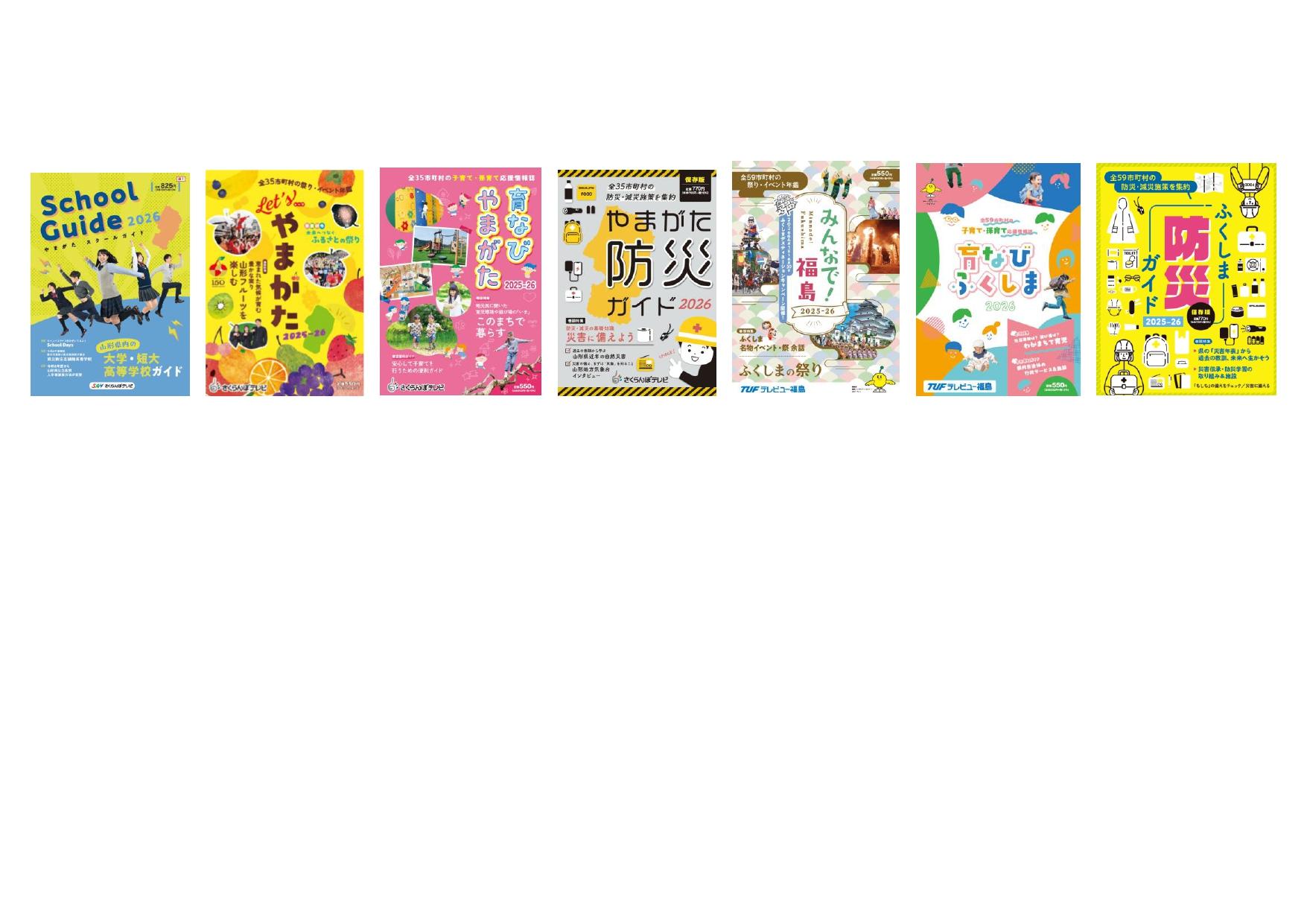 郷土の祭り・イベント年鑑「みんなで!福島」、次の災害に備えるために安全・安心をサポートする「ふくしま防災ガイド」、子育て世帯を応援する「育なびふくしま」を全て企画構成し、TUFテレビユー福島より発行しています。