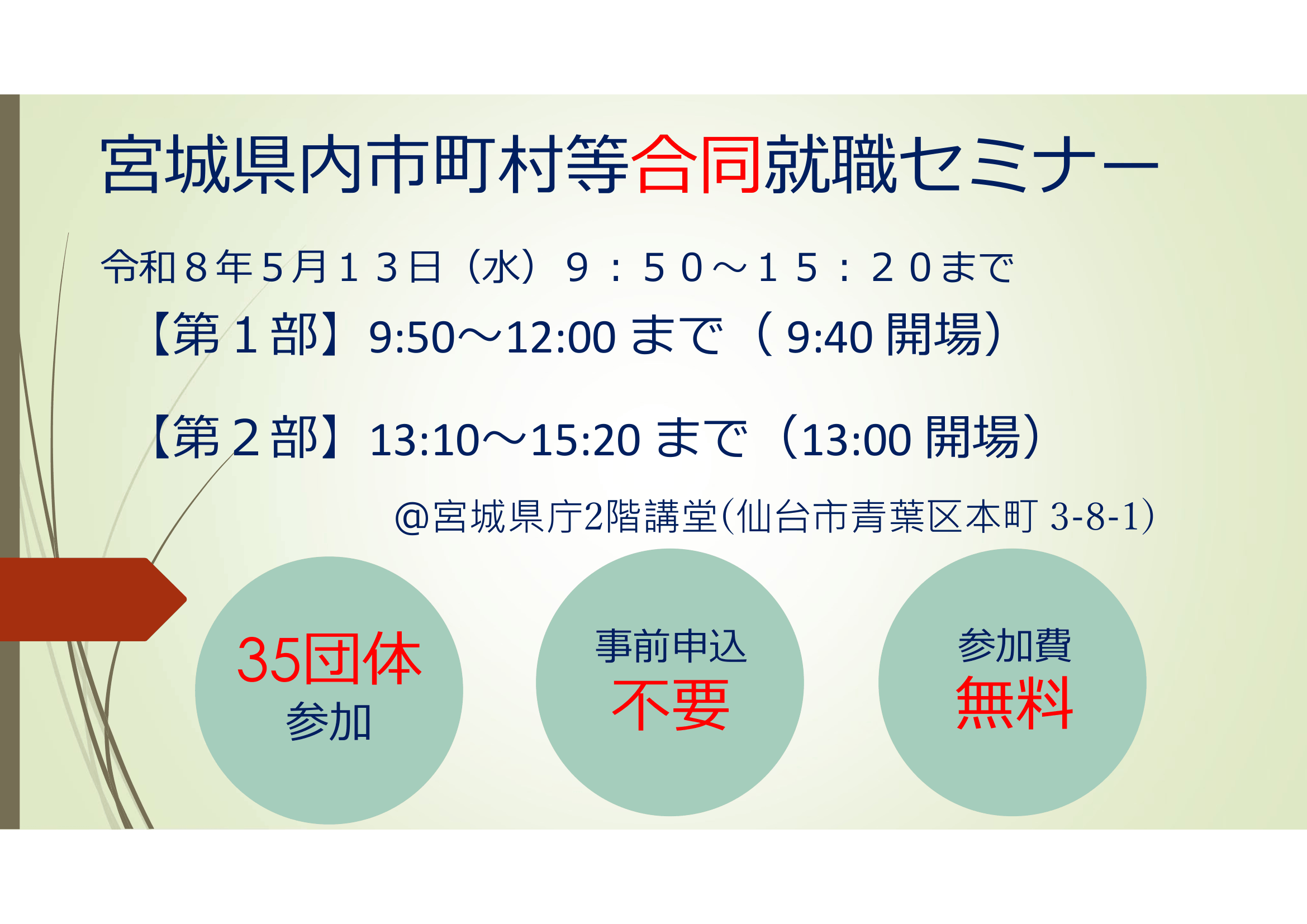 第1回宮城県内市町村等合同就職セミナーを開催します!
