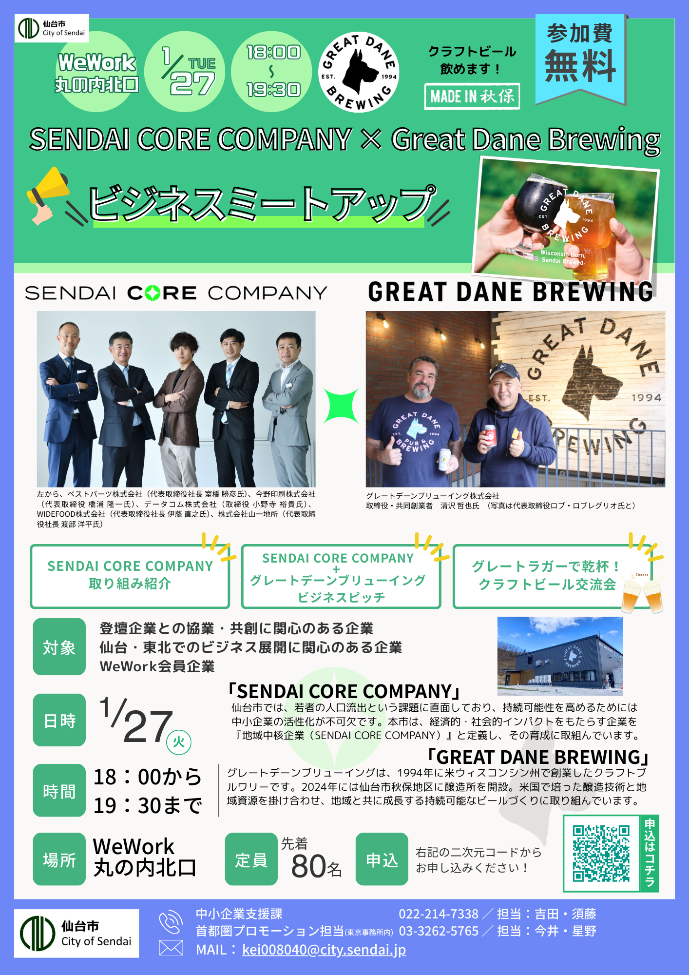【仙台市 1/27開催】SENDAI CORE COMPANY×Great Dane Brewingビジネスミートアップ