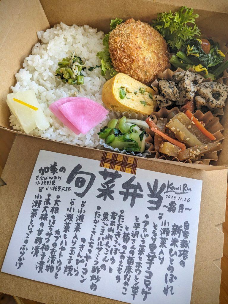 もちろん、旬を迎える10月~11月にはKamiRuのお弁当にも「小瀬菜メニュー」がお目見えするそうです。